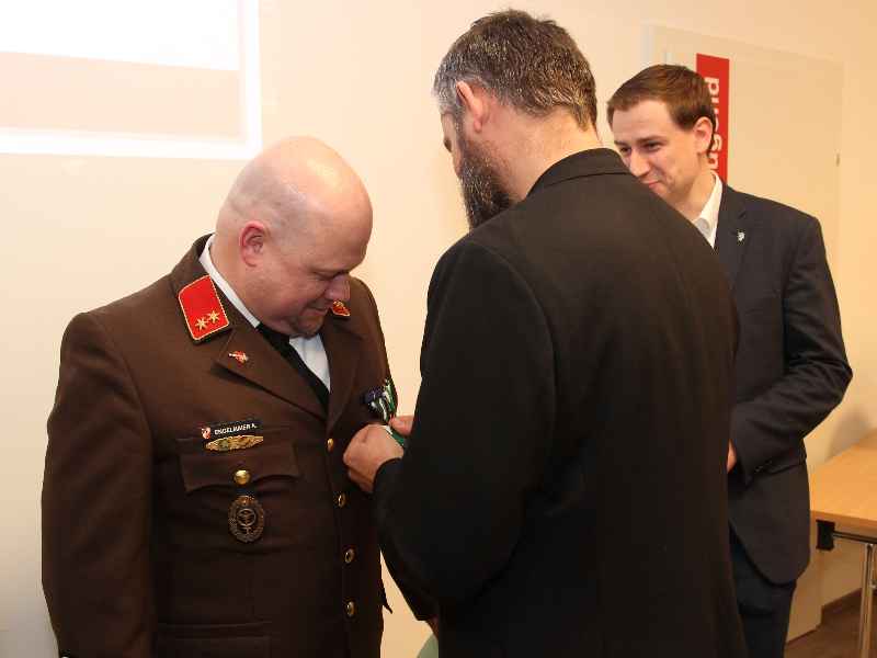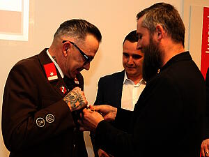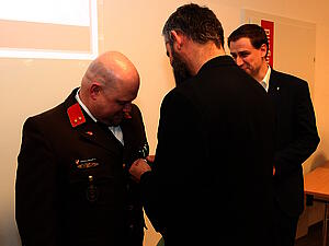 Brandinspektor Christian Rauscig und Hauptbrandinspektor außer Dienst Josef Kerschbaumer durften das Verdienstkreuz in Bronze entgegennehmen.
