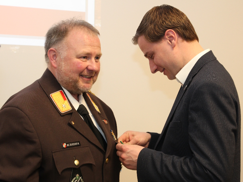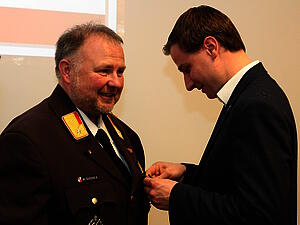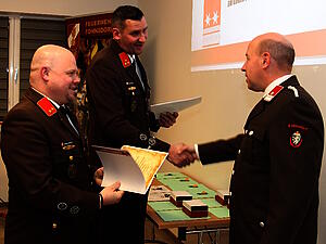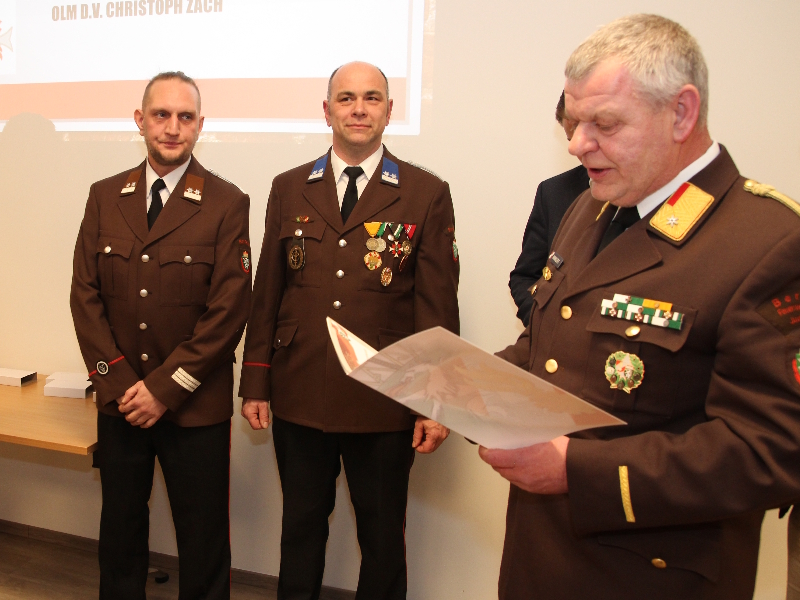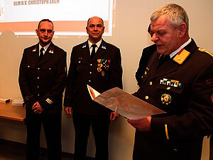 Oberlöschmeister Dominik Beer und Oberlöschmeister Christoph Zach zeichnete man mit dem Verdienstzeichen der 2. Stufe des Landesfeuerwehrverbandes aus.