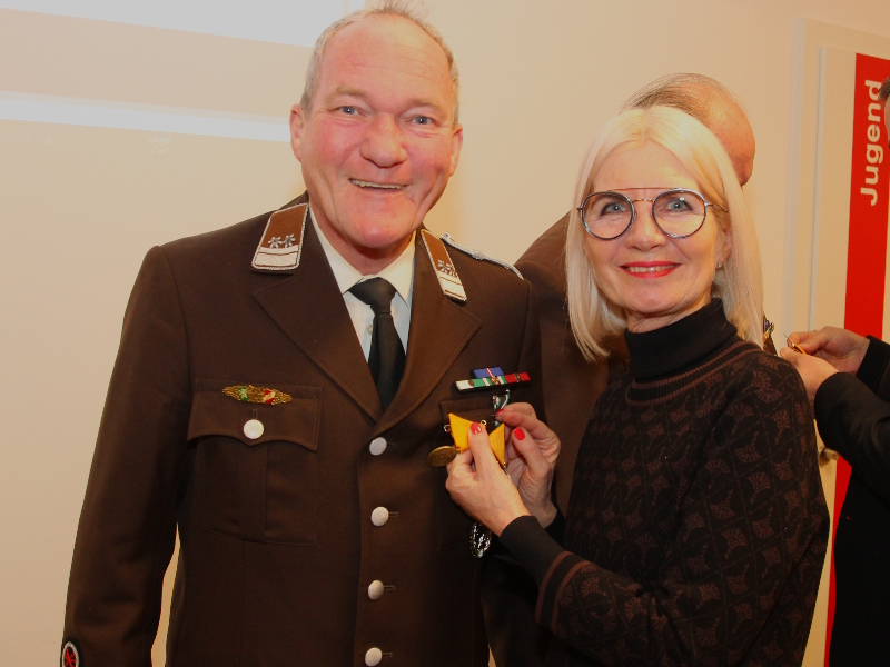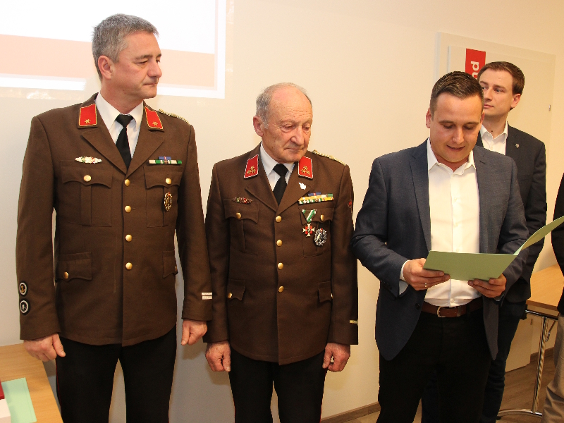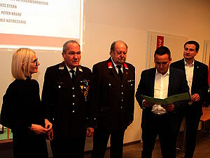 Die Medaille für 40-jährige Tätigkeit im Feuerwehrwesen erhielten Oberbrandmeister Peter Kranz und Löschmeister Fritz Stern, jene für 25-Jahre Löschmeister Andreas Novak.
