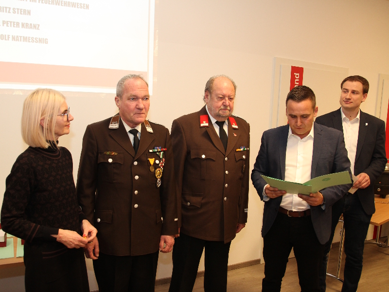 Für außerordentliche Leistungen im Feuerwehrdienst bekamen Abschnittsbrandinspektor außer Dienst Ing. Werner Scheucher und Abschnittsbrandinspektor außer Dienst Josef Dumpelnik das Verdienstkreuz der steiermärkischen Landesregierung in Silber überreicht.