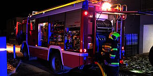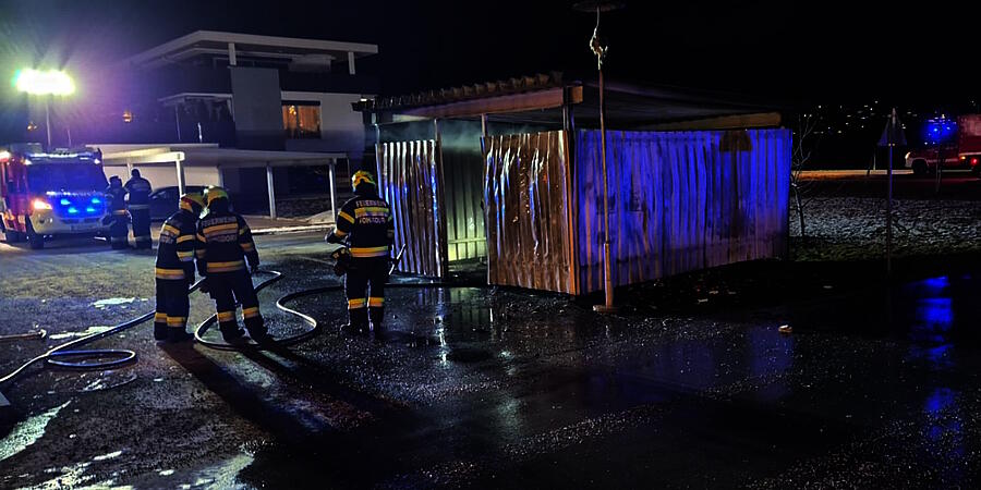 Am frühen Abend der Silvesternacht 2025 gingen mehrere Notrufe bei der Leitstelle der Feuerwehr ein. Eine eingehauste Müllsammelstelle stand in Vollbrand. Bereits bei der Anfahrt nahm die anrückende Mannschaft den Feuerschein wahr. Unter Atemschutz konnte der Brand mit der Schnellangriffseinrichtung des Tanklöschfahrzeuges rasch niedergeschlagen werden. Um etwaige Glutnester aufzuspüren verwendete der Atemschutztrupp eine Wärmebildkamera. Nach Reinigung der eingesetzten Ausrüstung beendete die Feuerwehr gegen 20:30 Uhr die Hilfeleistung. Insgesamt standen vier Fahrzeuge mit 17 Kräfte sowie die Polizei im Einsatz.