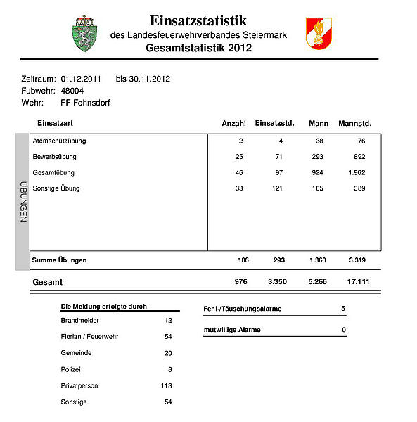 Die Aufzeichnungen der Tätigkeiten der Feuerwehr Fohnsdorf zeigen beeindruckend wieviel unentgeltliche Arbeitsleistung von den Feuerwehren dieses Landes, und somit von den vielen freiwilligen Helfern, erbracht werden.